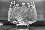 Bill was in Caithness that summer filming Jimmy Saville on one of his Land’s End to John O’ Groats expeditions. As it turned out, Bill was already planning the Mastermind programme and was to hoping to find something different and new for a trophy. In copper wheel engraved glass he found what he was looking for. His choice of subject for the trophy was the “Muses” from Greek mythology; those mythical beings credited with inspiring humans in the “Arts”. Over the years (with only one or two exceptions) I have stuck with Bill’s original choice.
